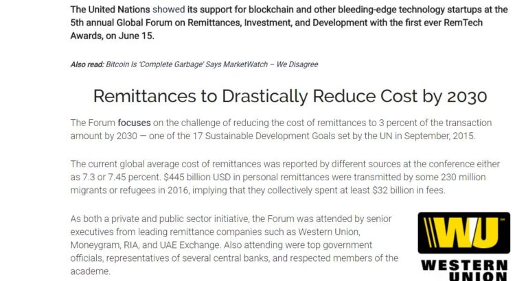 The United Nations showed its support for blockchain and other bleeding-edge technology startups at the 5th annual Global Forum on Remittances, Investment, and Development with the first ever RemTech Awards, on June 15.