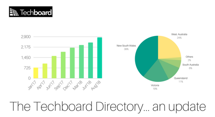 Startup and Tech Company data is at the very core of what Techboard is. Central to Techboard's data collection and monitoring efforts is the Techboard Directory. Once we have added a company to the directory we start tracking traction and growth metrics on the company, such as funding events as will be featured in our upcoming Annual Funding Report out soon. Since the beginning of 2017 we have been working hard to grow the directory from a Western Australian focused directory to a truly national directory of Australian startups and young tech companies.Â